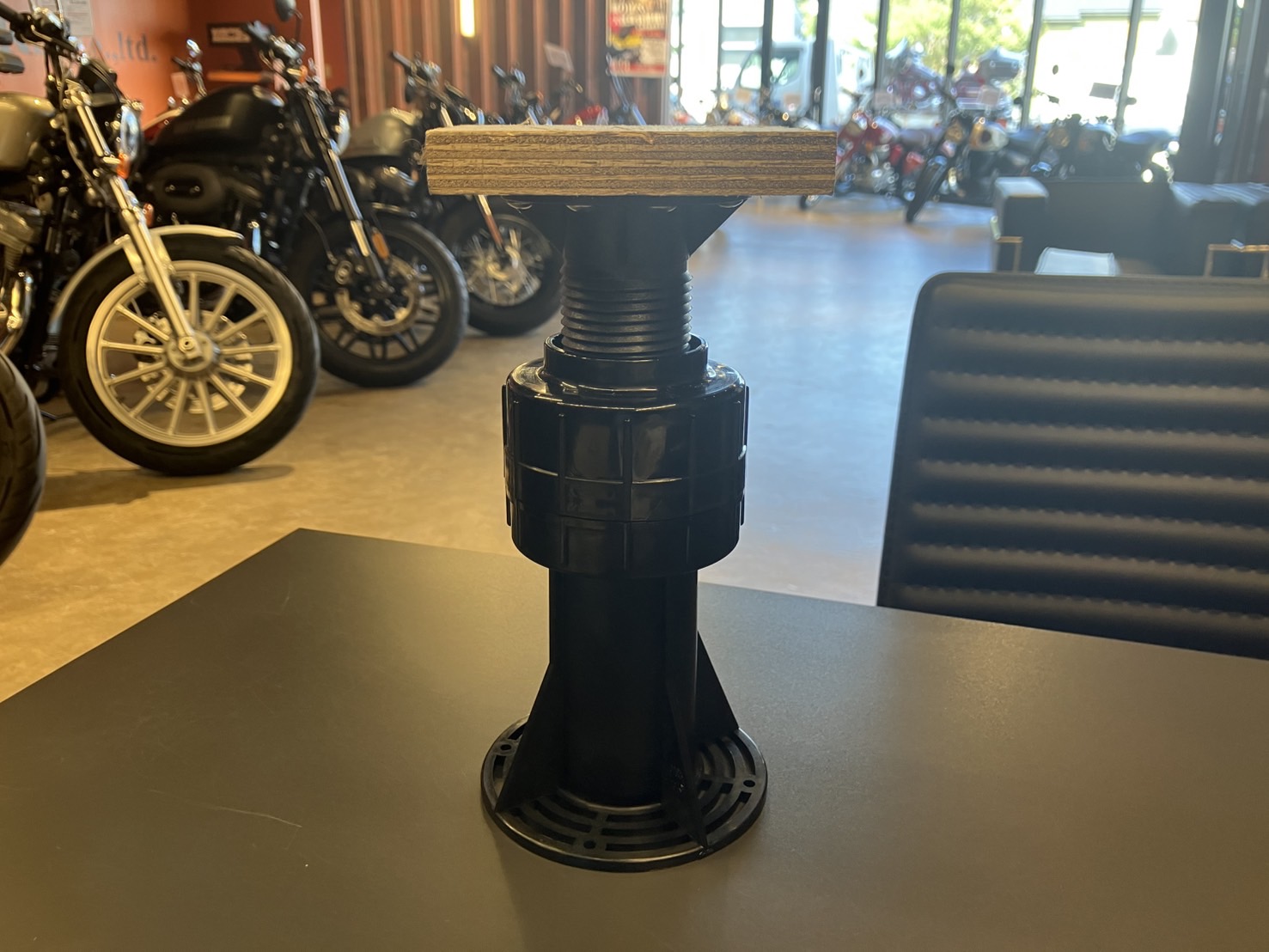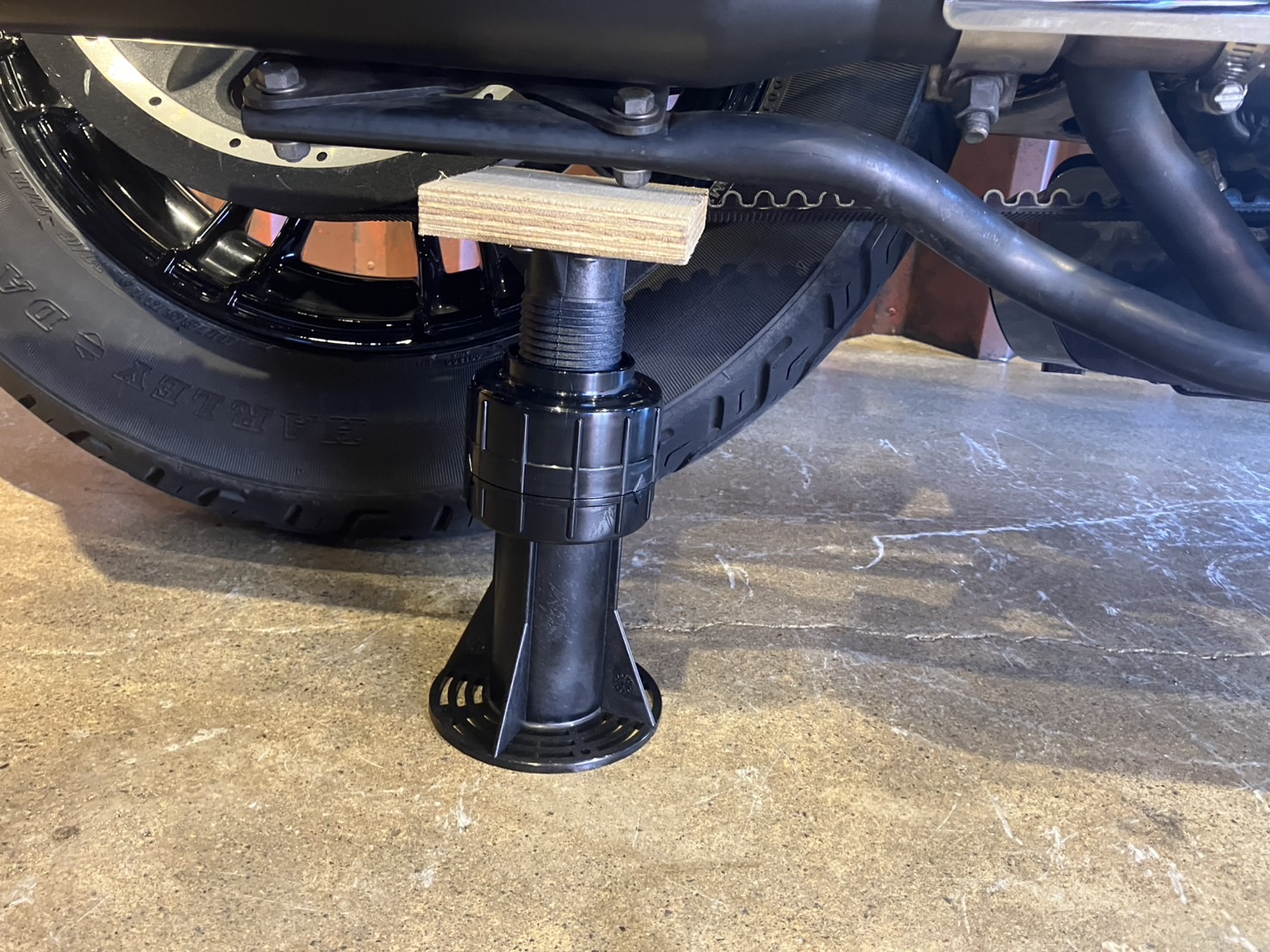 2024年1月1日におきた能登半島地震以降、長期預かり車両や長期連休時には車両の右側のマフラーステーやスイングアームなどに床束で固定し万が一の地震などが起こってもオートバイが転倒しないようにしております!細かい事ですが、こちらをしているという安心感がスタッフにもありゆっくり休日を過ごすことが出来ております。