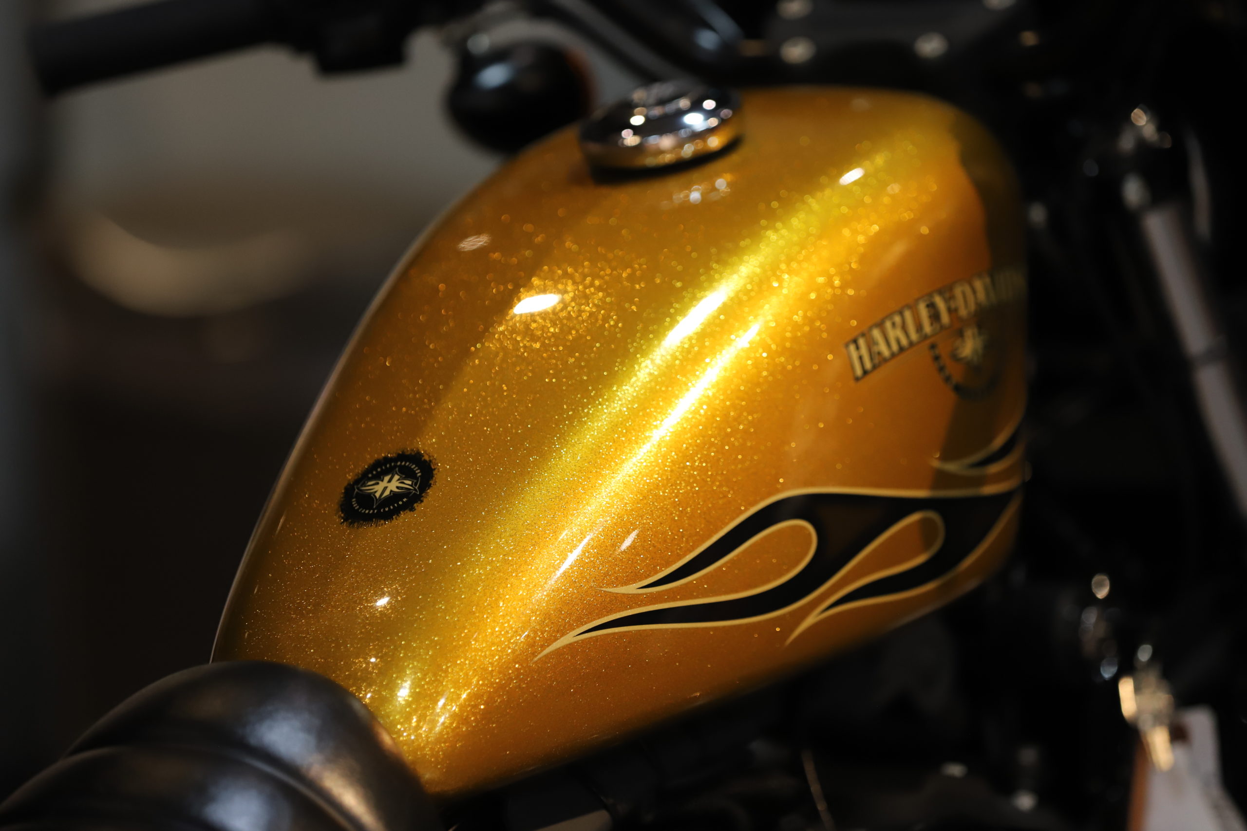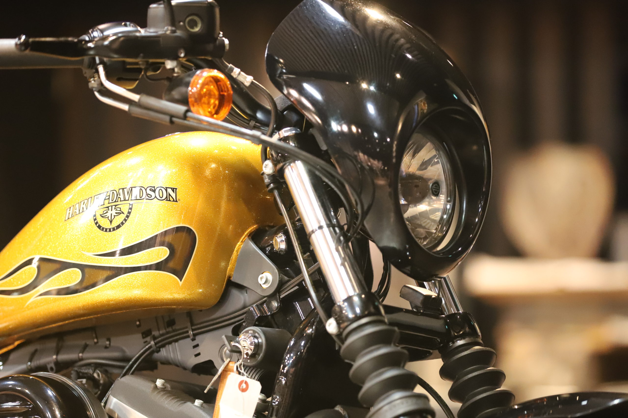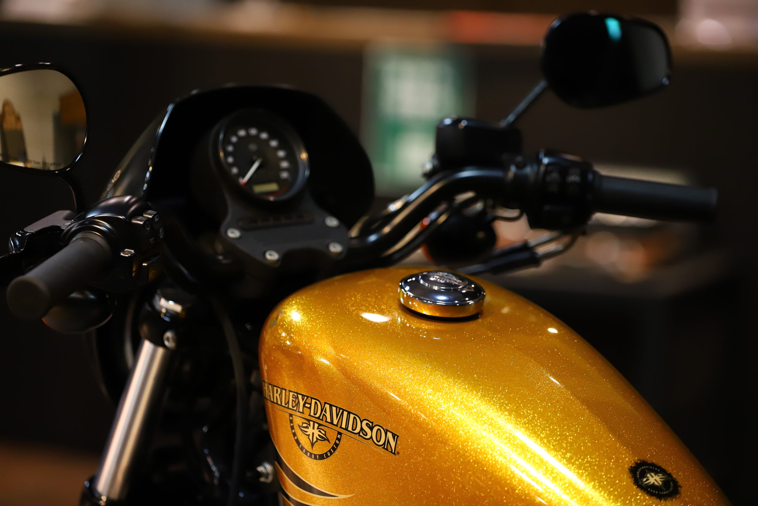 XL883N”アイアン”が入荷致しました!ハードキャンディーゴールドフレークの外装にブラックエンジンでカッコイイ一台となります!しかも低走行!!ETC、シーシーバー付き★シート高も低く女性の方や初心者の方にもオススメです!細かい画像や動画をご希望の方はお電話、又はLINEでご連絡を頂けましたら幸いです。お問い合わせは0776-57-8800までお願い致します。公式LINE@でのお問い合わせも承っておりますので、ご希望の方はQRコードより「友達追加」をお願い致します!!
