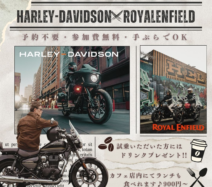 ハーレー&ロイヤルエンフィールド乗り比べ大試乗会inあわら市3月21日(土)・22日(日)